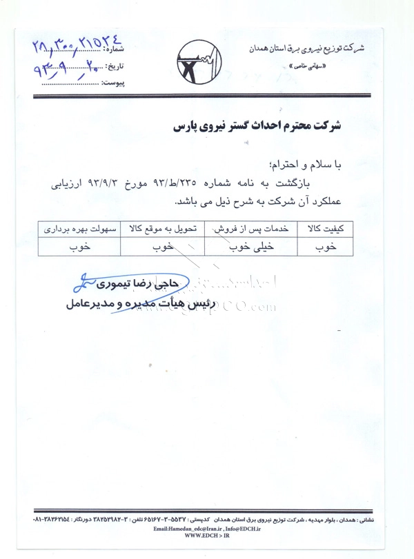 فهرست سازندگان اکثر شرکت های توزیع نیروی برق ( تهران بزرگ ، اصفهان، خوزستان ، مرکزی ، لرستان ، قزوین ، اردبیل ، فارس ، شیراز ، همدان ، شمال وجنوب کرمان و... )